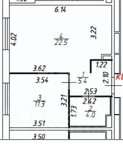 Планировка: Просторная кухня-гостиная (22,5 м²) — сердце дома, где удобно принимать гостей и проводить семейные вечера, и изолированная спальня (14,2 м²).