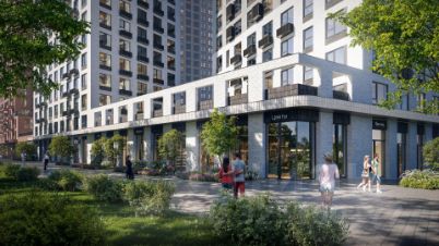 Первые этажи с панорамными окнами создают сцену для яркой городской жизни. Здесь появятся пространства для прогулок, летние террасы, рестораны и коммерческие помещения.