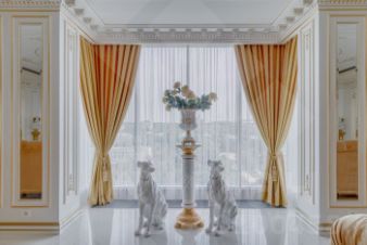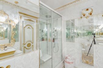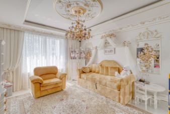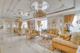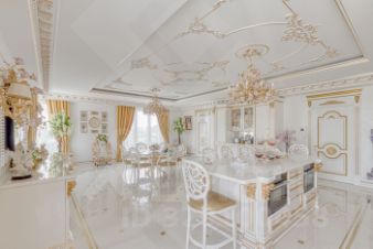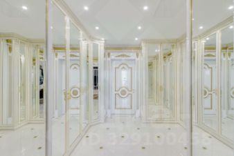 В квартире все элементы декора изготовлены с применением сусального золота. По всему периметру квартиры проведена приточно-вытяжная вентиляция, видеонаблюдение, имеется система от протечек аква стоп, функционирует система умный дом, управляемая с телефона. На кухне вся техника марок Miele. Neff. Панорамные окна в пол позволяют наслаждаться непередаваемыми видами на МГУ, пруд и посольства