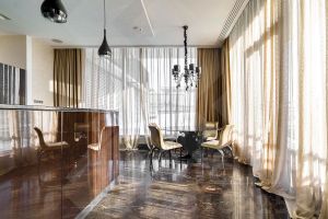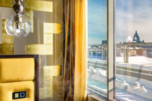 Панорамные окна выходят на 4 стороны света. Терраса площадью 180 кв.м. проходит по всему периметру пентхауса.