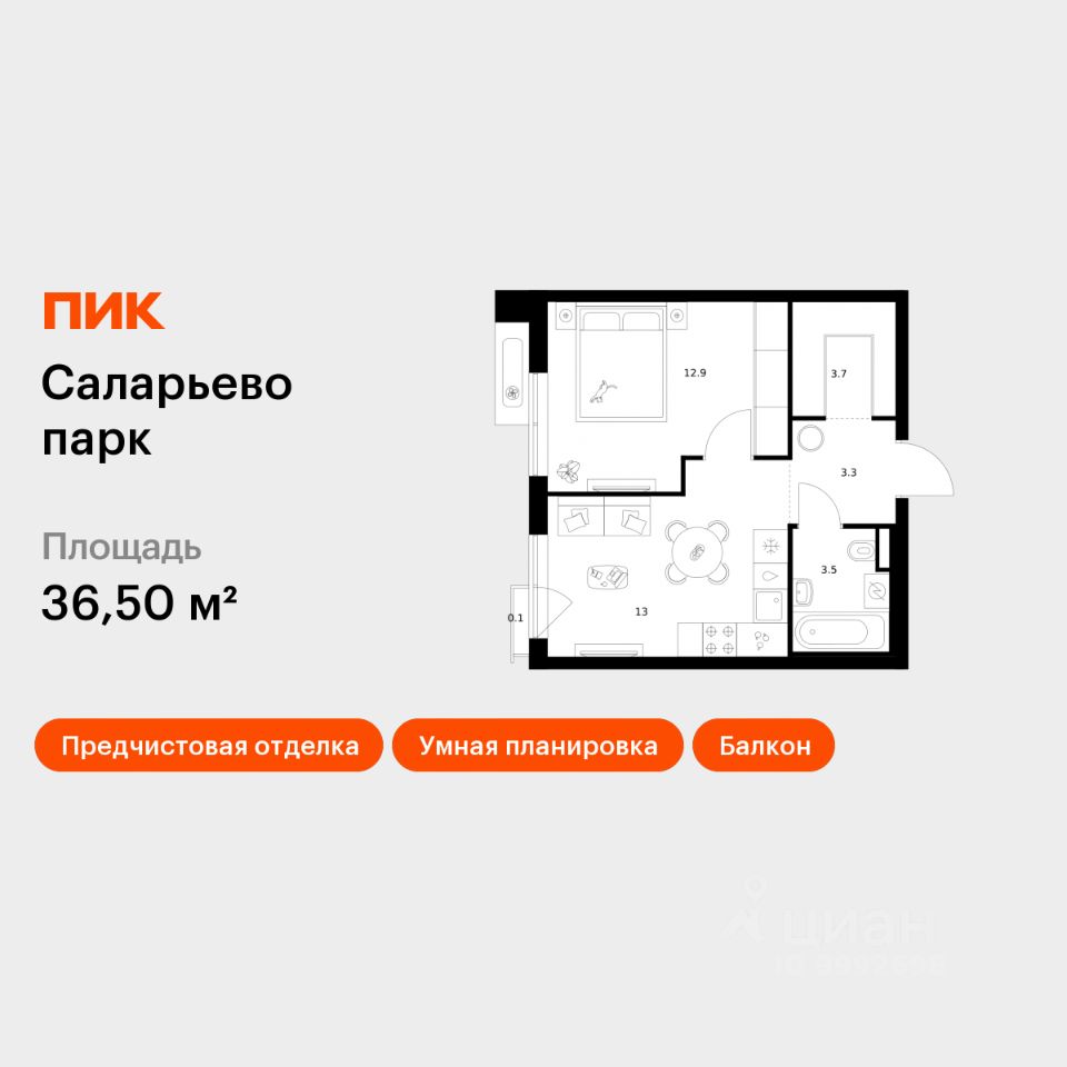 Продаётся 1-комн. квартира площадью 36,5 кв.м на 15 этаже 22 этажного дома (Корпус 57.3, Секция 3) проекта ПИК Саларьево парк. Светлый просторный подъезд на уровне земли, функциональная планировка, большие окна, предчистовая отделка.