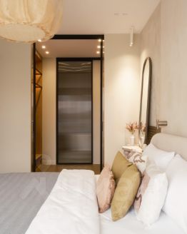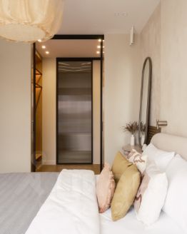 • Мастер-спальня (12.5 кв. м): Ваша личная зона релакса с собственной гардеробной (4.1 кв. м) и роскошным санузлом (5.6 кв. м), оборудованным как ванной, так и современной душевой кабиной.
