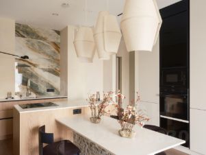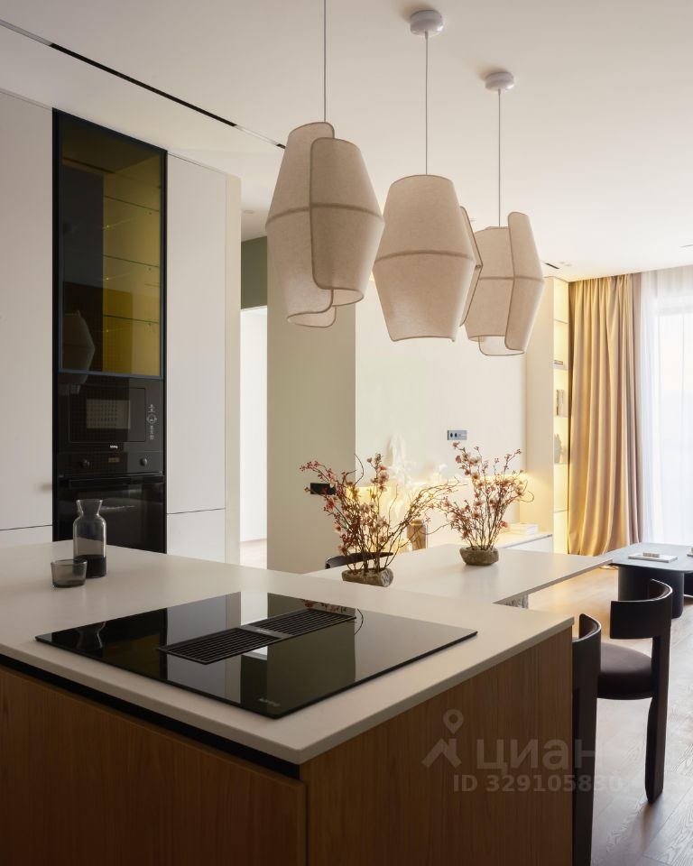 • Полностью оборудованная кухня: Индукционная варочная панель с мощной встроенной вытяжкой, духовой шкаф, винный шкаф, СВЧ-печь, полноразмерный холодильник, посудомоечная машина — всё от надежного бренда Korting.