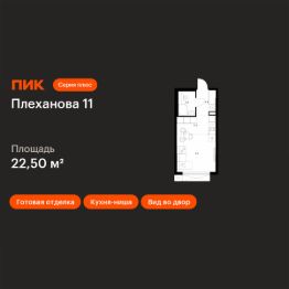 Продаётся квартира-студия площадью 22,5 кв.м на 9 этаже 24 этажного дома (Корпус 1.4, Секция 4) проекта ПИК Плеханова 11. Светлый просторный подъезд на уровне земли, функциональная планировка, большие окна, c отделкой.
