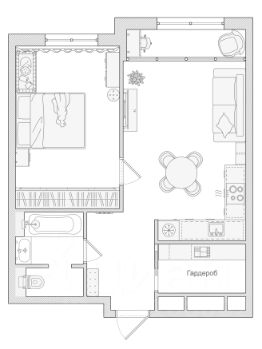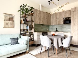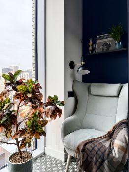 Функциональная кухня-гостиная с встроенной техникой (Bosch, Samsung, Electrolux), уютная спальня с шумоизоляцией и гардеробная-постирочная. В квартире установлены теплые полы, внутрипольные конвекторы и кондиционер.