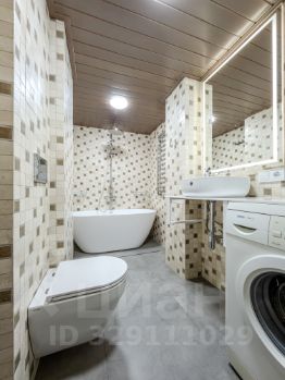 Просторная ванная комната 7 м²: отдельностоящая ванна и душевая зона, тёплый пол, качественная сантехника.