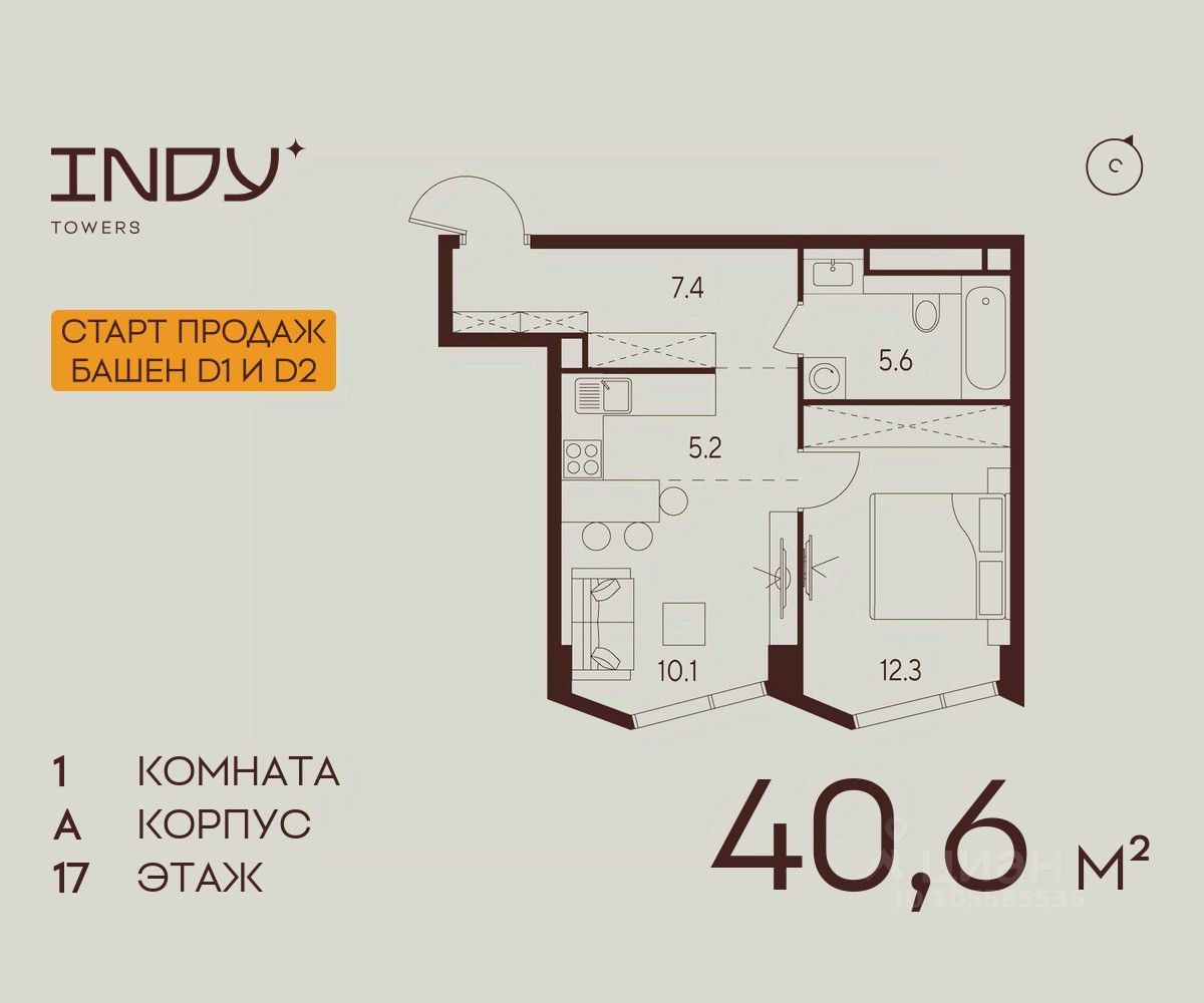 Продается уютная однокомнатная квартира на 17 этаже жилого комплекса Indy Towers. Вид из окон: на улицу. Срок сдачи: 4 кв. 2026 г.