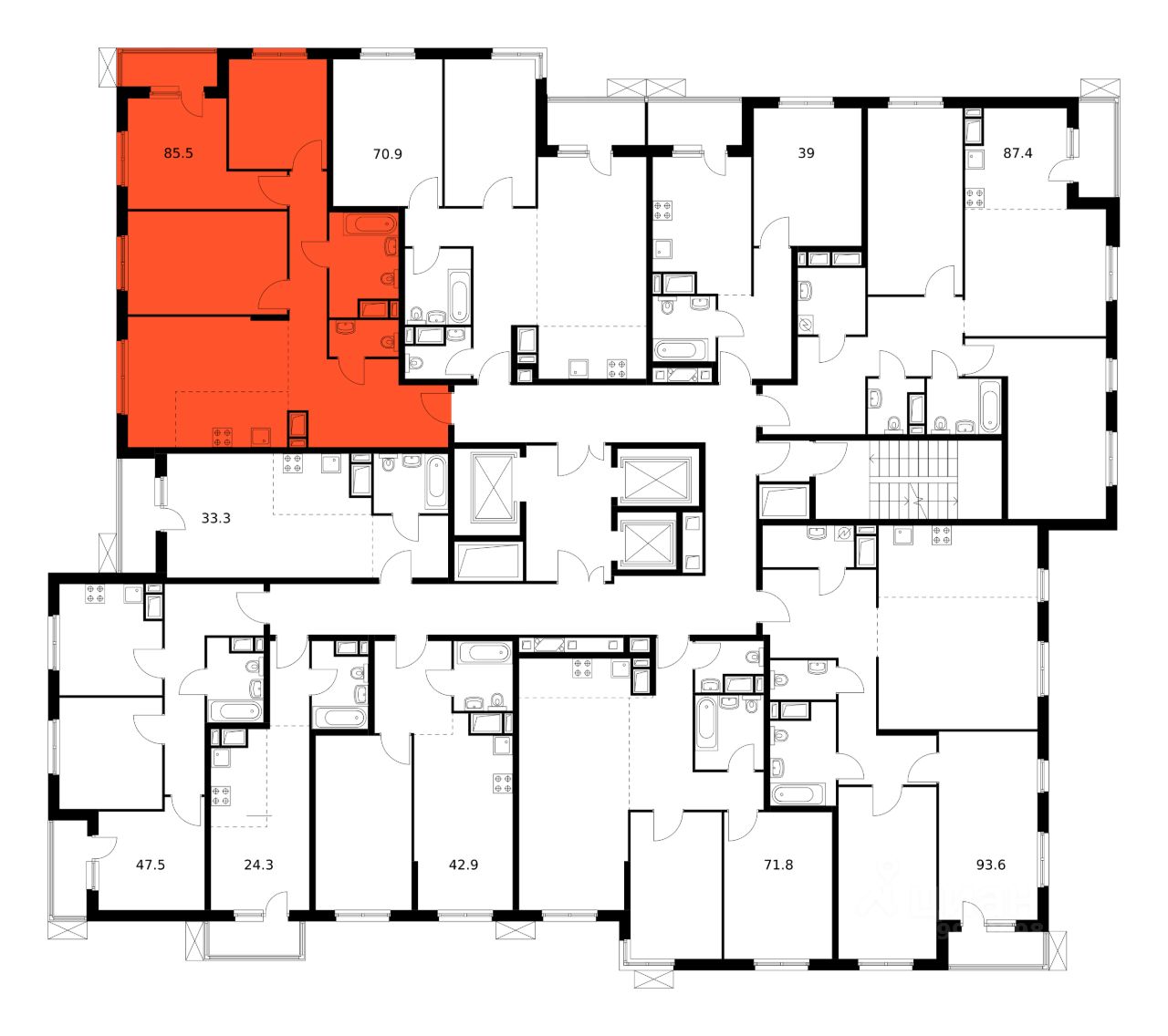 Продаётся 3-комн. квартира площадью 85,5 кв.м на 17 этаже 24 этажного дома (Корпус 15.1, Секция 1) проекта ПИК Митинский лес. Светлый просторный подъезд на уровне земли, функциональная планировка, большие окна, без отделки.