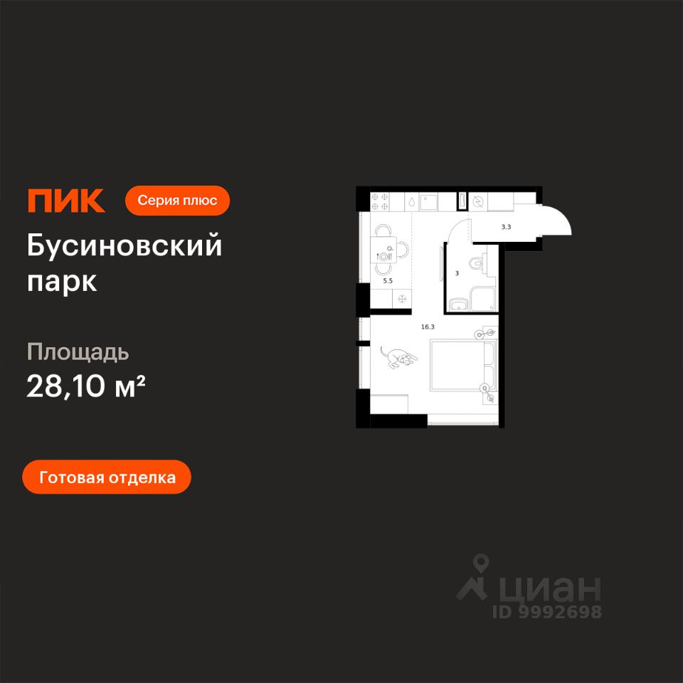 Продаётся квартира-студия площадью 28,1 кв.м на 7 этаже 23 этажного дома (Корпус 2.4, Секция 2) проекта ПИК Бусиновский парк. Светлый просторный подъезд на уровне земли, функциональная планировка, большие окна, c отделкой.