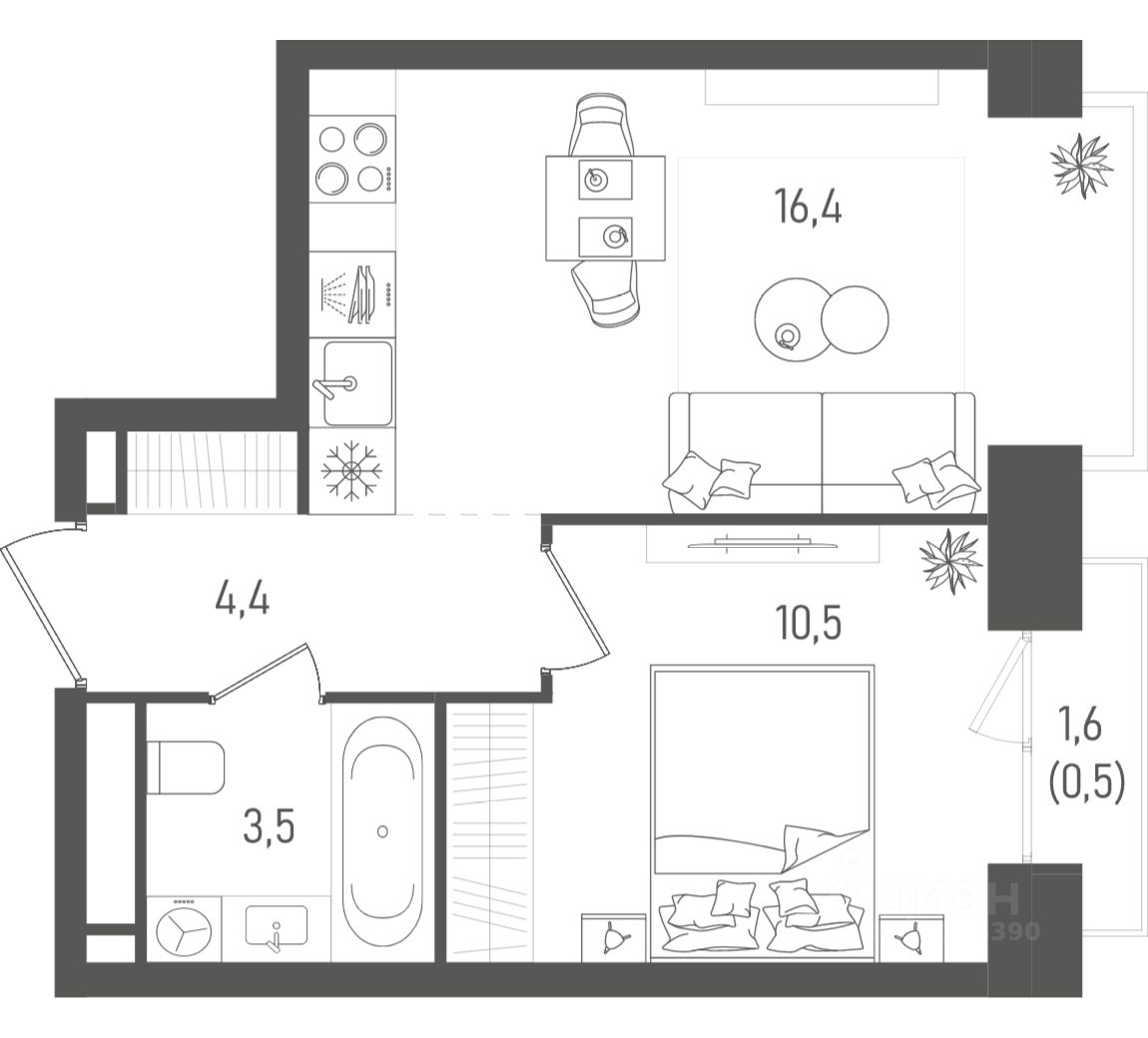 Площадь: 35.3 кв. м.
