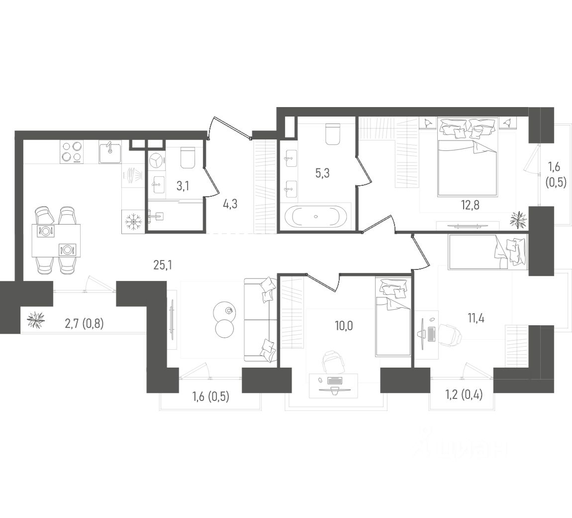 Площадь: 74.2 кв. м.