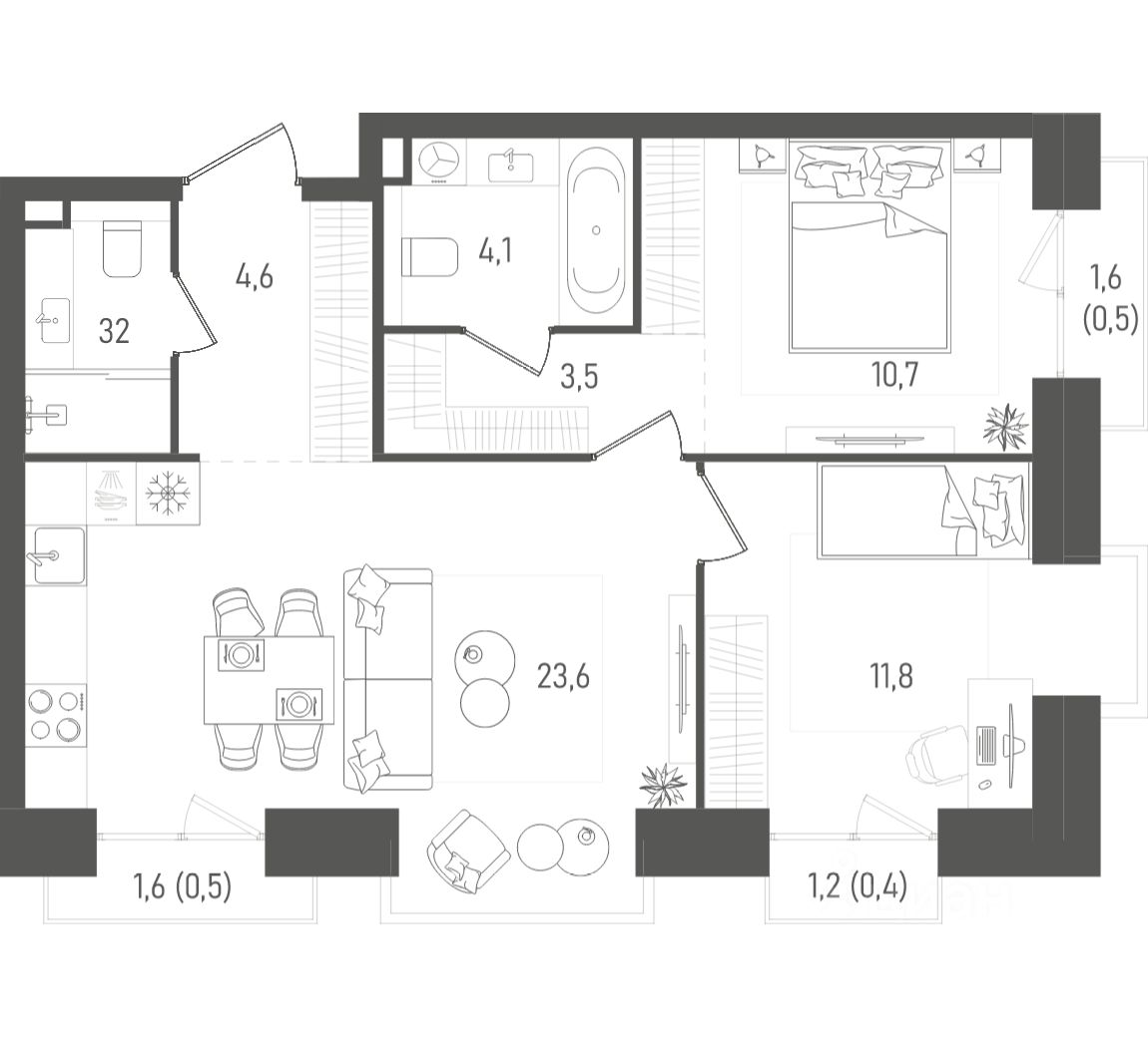 Архитектура квартала — это пять выразительных башен с закрытой территорией без машин. В каждой квартире предусмотрены джамбо-окна и балконы. Внутри квартала создана среда, где комфортно всем членам семьи: прогулочная аллея с ритейлом, дворы без автомобилей, видеонаблюдение на всей территории комплекса и безопасные покрытия. В доме предусмотрена инфраструктура для резидентов: