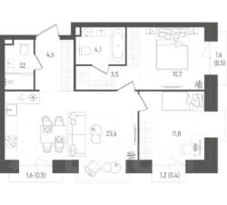 Площадь: 62.9 кв. м.