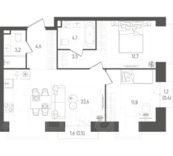 Площадь: 64.4 кв. м.