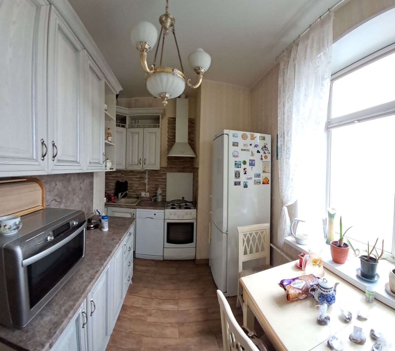 Уютная кухня с техникой, встроенные шкафы, люстры остаются покупателям. В квартире выполнен качественный ремонт - трехкамерные стеклопакеты, потолки натяжные, в коридоре - навесной двухуровневый потолок, пол - в кухне плитка с подогревом, в больших комнатах - паркет, в коридоре и маленькой комнате - хороший ламинат; межкомнатные двери- массив; батареи чугунные, заменены при кап.ремонте дома в 2012 -м году, остальной ремонт производился собственником недавно.