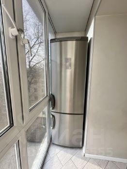 В зоне балкона располагается холодильник и сушильная машина