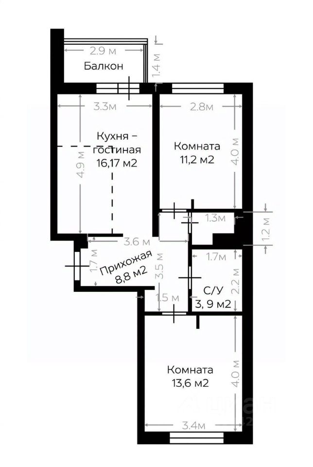 Удобная планировка включает 2 отдельных комнаты, большую кухню-гостиную с просторной лоджией, холл, раздельный санузел, а также в квартире предусмотрены ниши под шкафы.