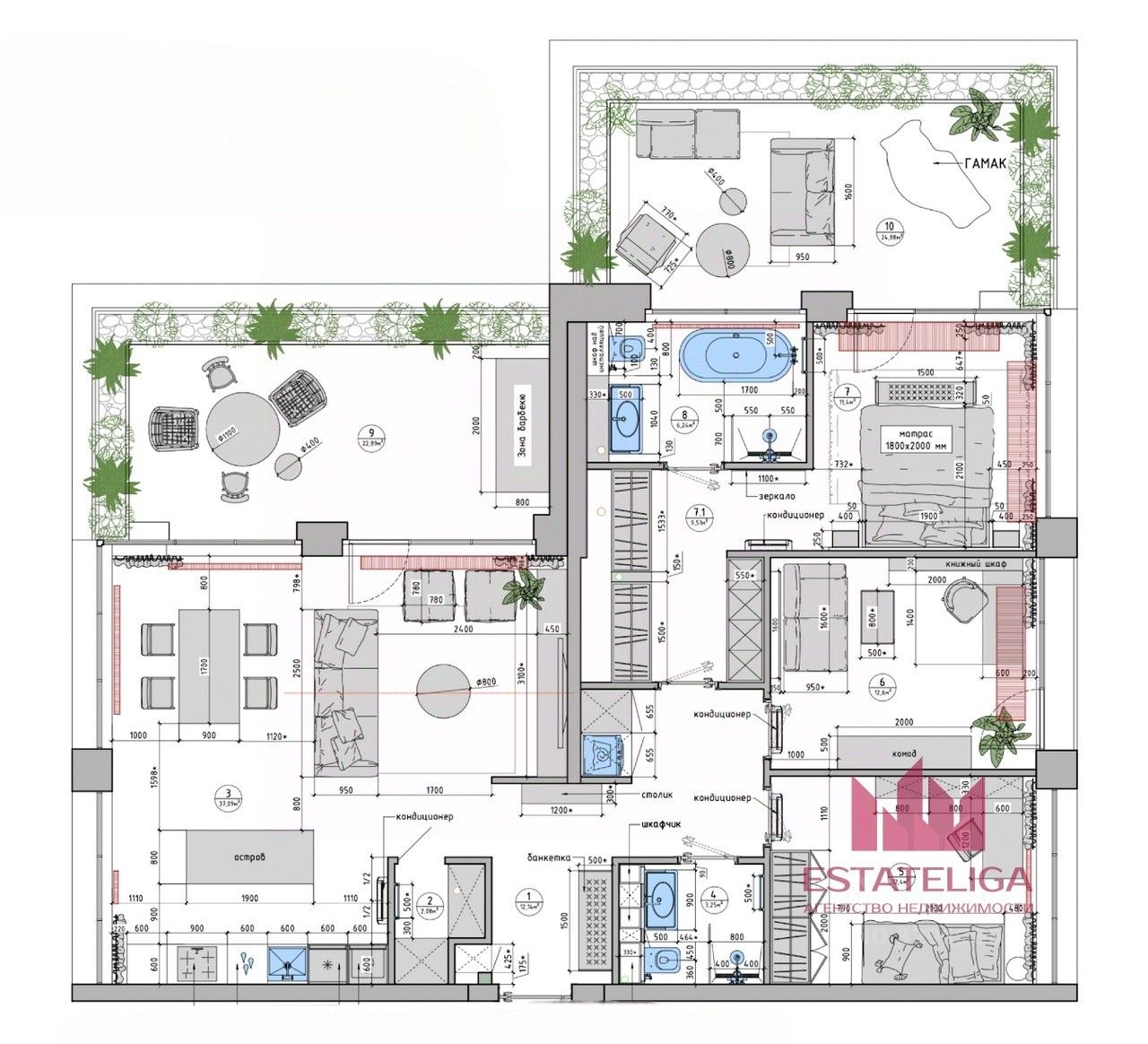 - 2 террасы - при кухне-гостиной и при мастер-спальне