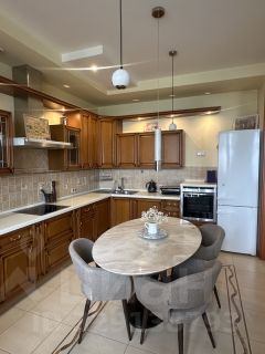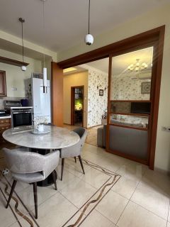 По всей квартире паркет. На кухне и в санузлах плитка + полы с подогревом
