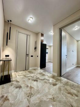 В квартире выполнен современный дизайнерский ремонт из качественных материалов.