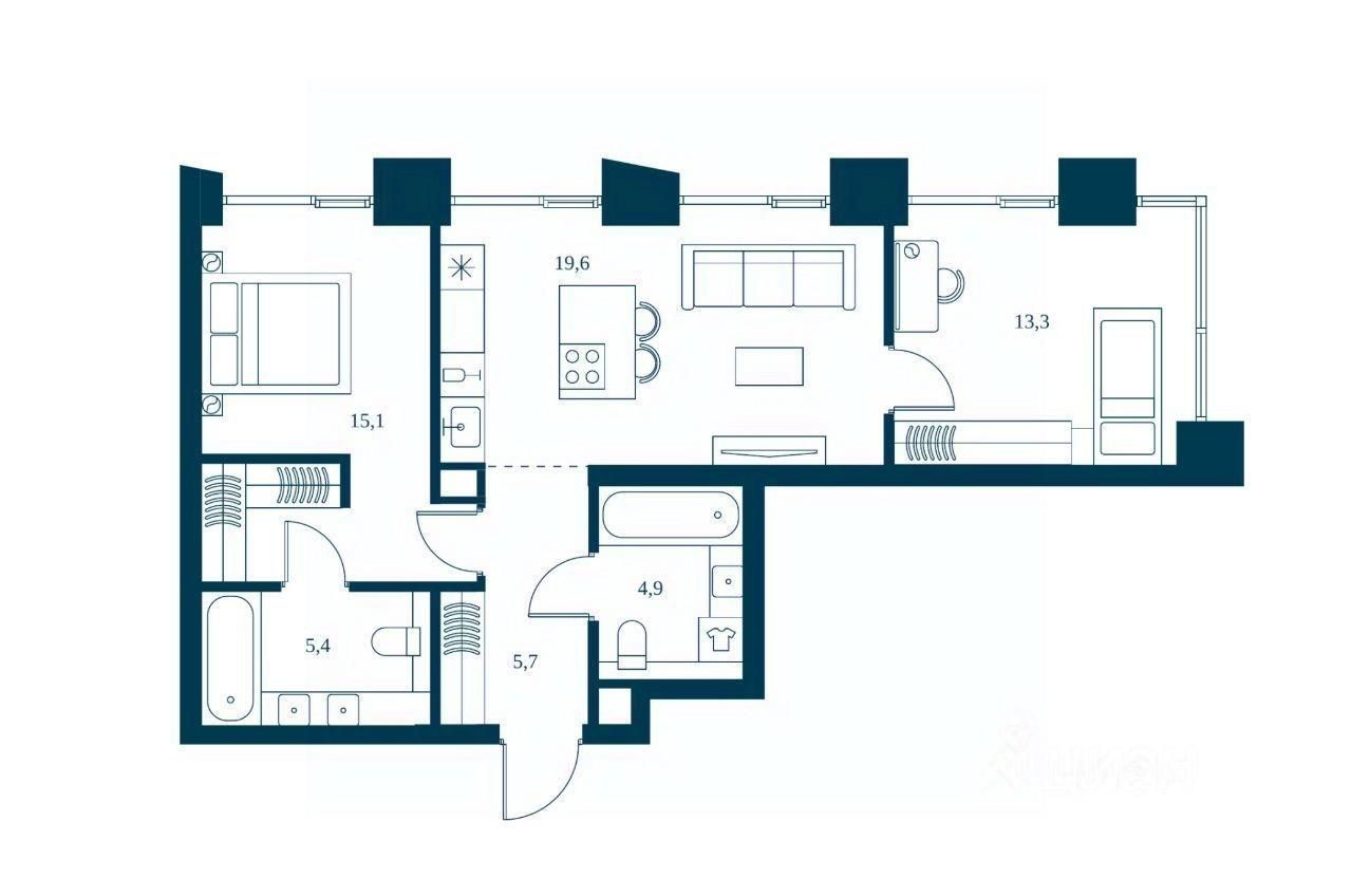 Объект: евро3комнатная квартира (2 изолированные спальни + кухнягостиная)