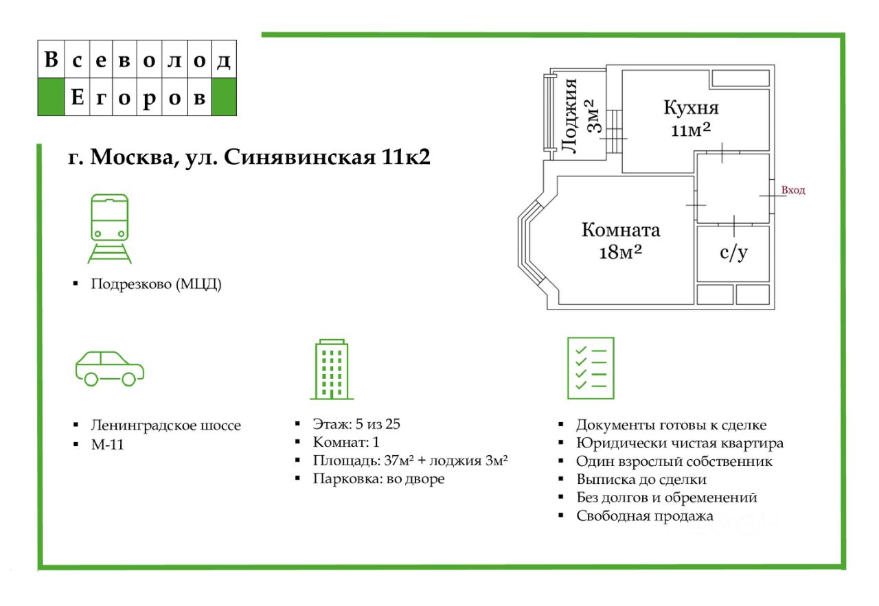 КВАРТИРА. Просторная комната 18м² с эстетичным эркером, удобная для зонирования пространства. Кухня 11м² с выходом на вместительную лоджию 3м². Соседи спокойные порядочные люди.