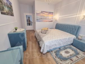 Спальня с большой евро-двухспальной кроватью, две прикроватные тумбочки, комод, туалетный столик, зеркало в оригинальной оправе, пуфик. Своя большая, вместительная гардеробная.