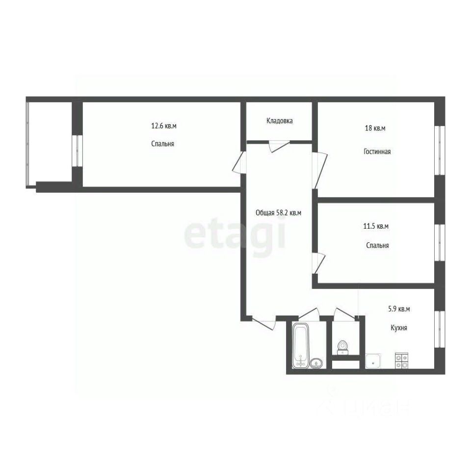 3-х комнатная квартира 58.2 кв.м