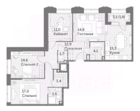 15,3 м²