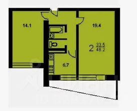 Квартира: в хорошем состоянии, общей площадью: 48 кв.м., кухня: 6.7 кв.м., комнаты изолированные: 19.4 и 14.1 кв.м., санузел раздельный, прихожая, высота потолков 2.65 м, встроенная кухня, полы-паркет, просторная застекленная лоджия, стеклопакеты, вид на улицу.