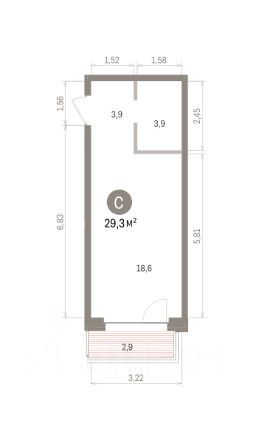 Студия в Доме "А". Особенности планировки: балкон, без отделки, вид во двор. Срок сдачи IV кв. 2027