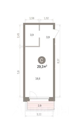 Студия в Доме "А". Особенности планировки: балкон, без отделки, вид во двор. Срок сдачи IV кв. 2027