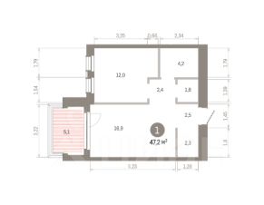 Квартира с кухней-гостиной и одной спальней в Доме "А". Особенности планировки: балкон, без отделки, гардеробная, постирочная. Срок сдачи IV кв. 2027