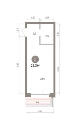 Студия в Доме "А". Особенности планировки: балкон, без отделки, вид во двор. Срок сдачи IV кв. 2027