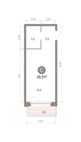 Студия в Доме "А". Особенности планировки: балкон, без отделки, вид во двор. Срок сдачи IV кв. 2027