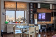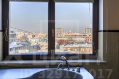 Из окон открывается шикарная панорама на легендарные сталинские высотки, изящный силуэт Дома Музыки, небольшие исторические особнячки старой Москвы.