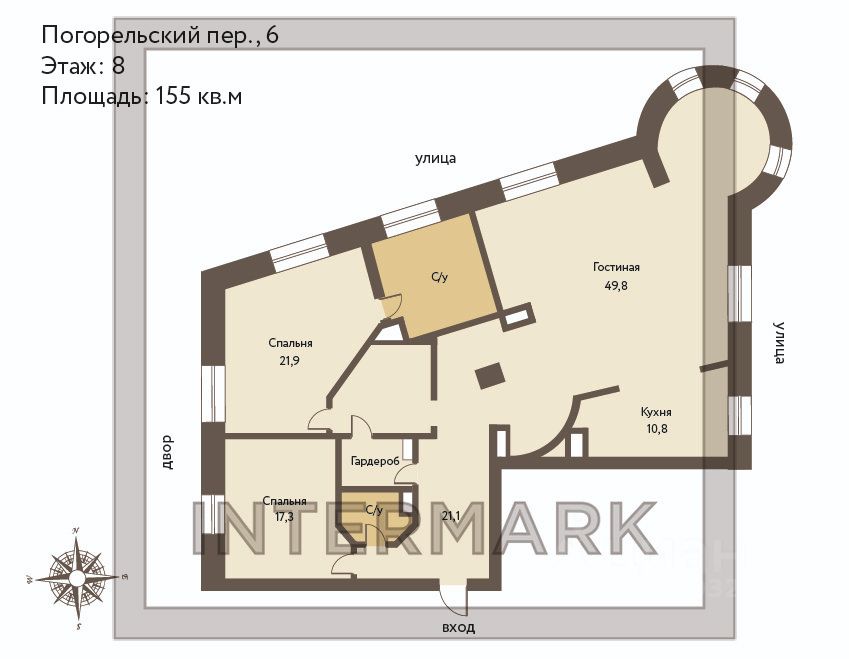 ID 65149. ЖК Дипломат. Редкая по своим характеристикам квартира в элитном камерном доме в уютных переулках Замоскворечья: 3-комнатная квартира с дровяным камином, уникальной ротондой и фантастическими видами на Москву на 3 стороны света.