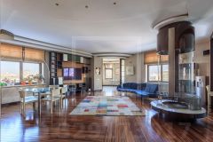 Выполнена высококачественная отделка, на полу уложен паркет Зебрано и Венге, квартира укомплектована бытовой техникой премиум-класса.