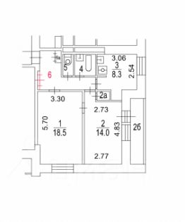 Две раздельные комнаты 18,5 и 14 м2. И просторная кухня 8,3 м2. Широкая лоджия 5 метров. Расположение комнат смотрите на планировке.