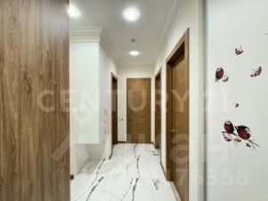В коридоре вместительный шкаф-купе и отдельная гардеробная — места для хранения вещей достаточно. По всей квартире тёплый пол, зимой в ней особенно комфортно.