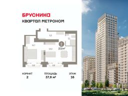 Квартира с кухней-гостиной и двумя спальнями в квартале "Метроном". Особенности планировки: балкон, вид во двор, предчистовая отделка, французский балкон.