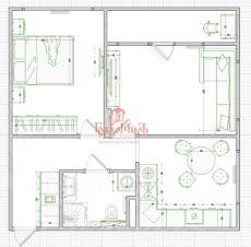 Функциональная и продуманная планировка: Общая площадь 46,9 кв. м распределена с умом. Две раздельные комнаты (12,6 и 12,9 кв. м), просторная кухня 10,1 кв. м и совмещённый санузел увеличенным метражом создают комфорт для жизни.
