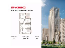 Квартира с кухней-гостиной и двумя спальнями в квартале "Метроном". Особенности планировки: балкон, без отделки, вид во двор, второй санузел, гардеробная, панорамное остекление, терраса на крыше.