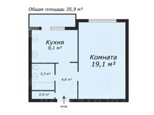 Арт. 134634139 Продается светлая, просторная 1-комнатная квартира в экологически чистом районе рядом с парком. Комната 19,1 кв.м, кухня с выходом на лоджию. В коридоре есть небольшая кладовая.