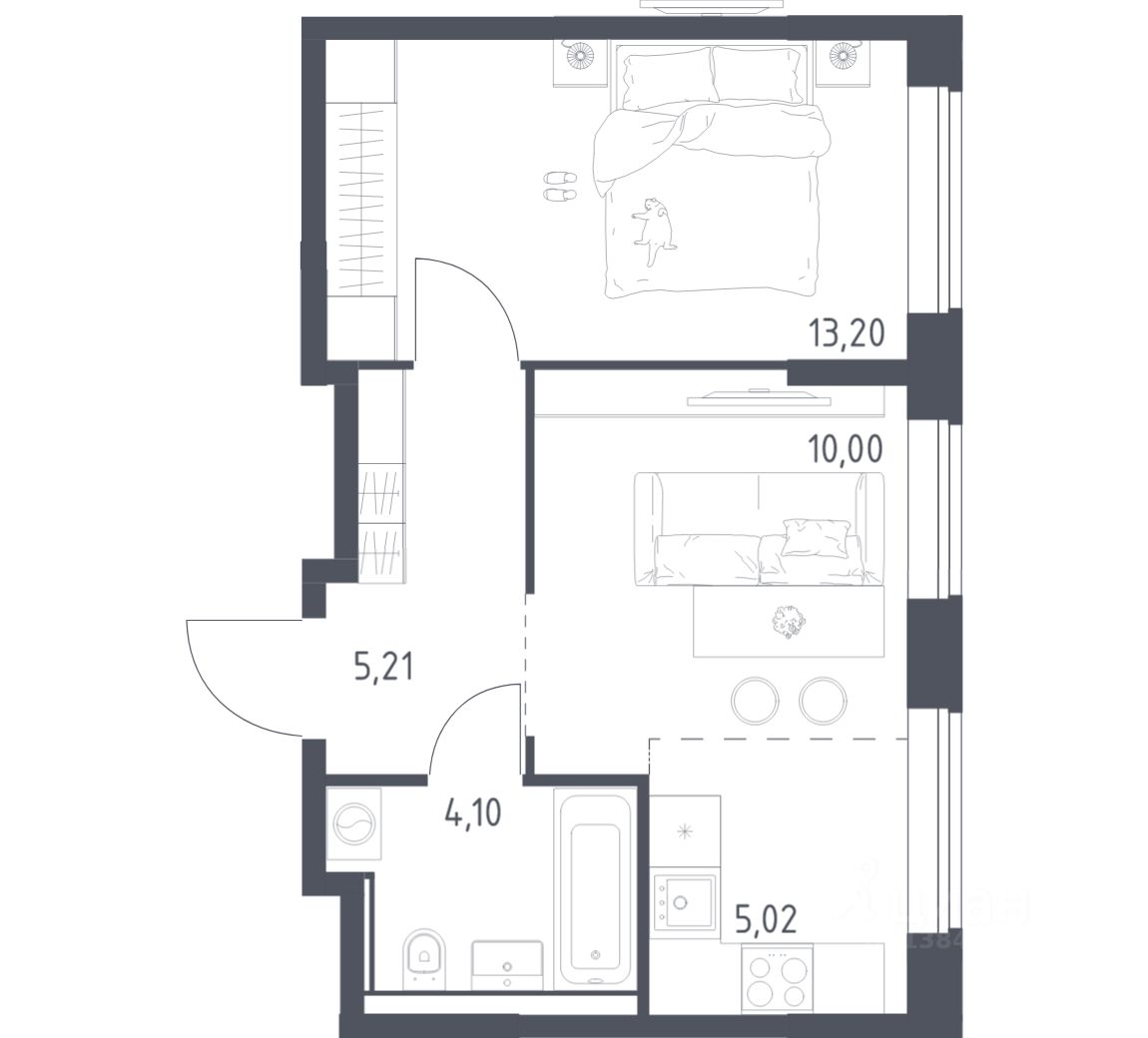 Строим кварталы для жизни с заботой о будущем. Предлагается 1-комнатная квартира комфорт-класса площадью 37,53 кв.м в корпусе 2 на 7-м этаже, в жилом комплексе "Квартал Домашний".