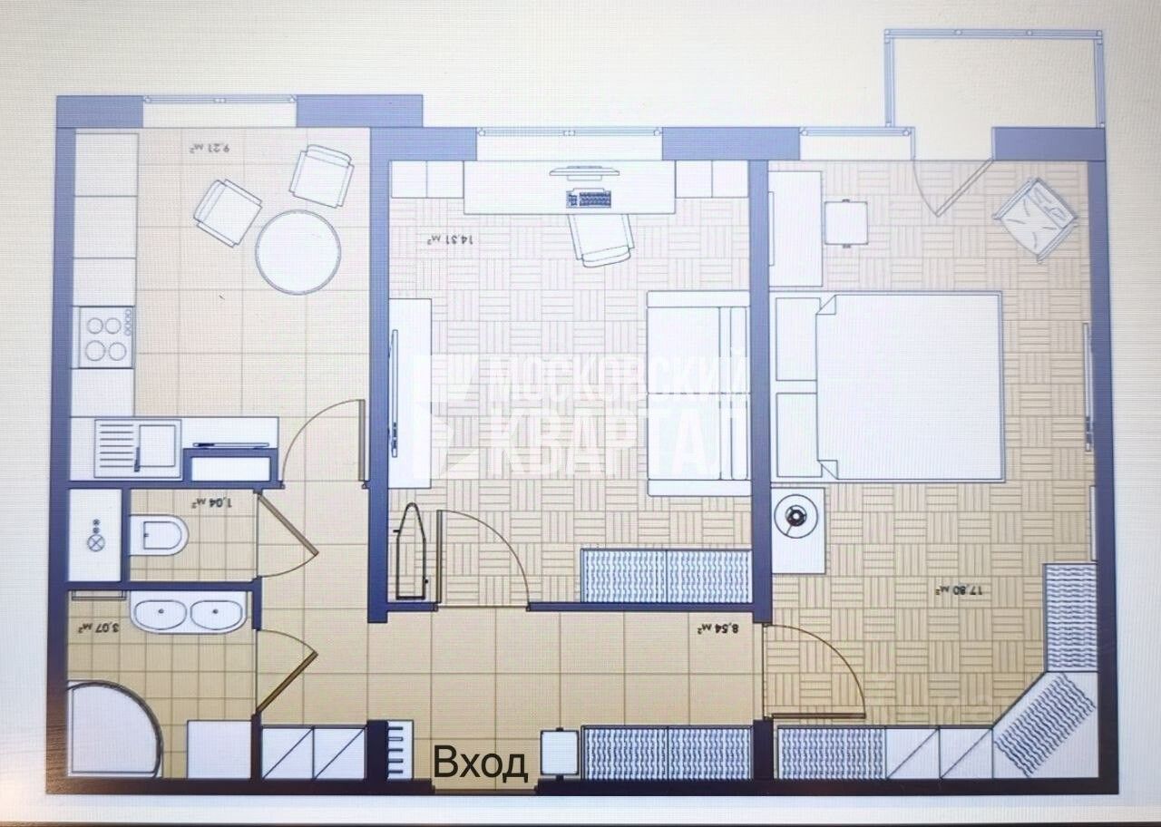 Уютная двухкомнатная квартира общей площадью 53,7 кв. м на среднем восьмом этаже 16-этажного дома.