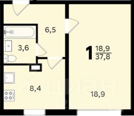 Общая площадь квартиры 37,8 кв. м., жилая 18,9 кв. м., кухня 8,4 кв. м. Без балкона.