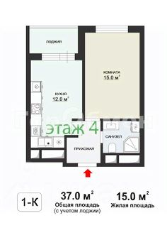 Общая площадь с учётом лоджии составляет 37 кв.м.
