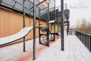 Во дворе для жителей предусмотрены пространства для отдыха и досуга: видовой мост протяжённостью 155 м, зоны для воркаута и работы на свежем воздухе, столы для пинг-понга, площадки для петанка и пляжного волейбола, футбольное поле, уютные террасы и уличный кинотеатр. Для авто — удобный подземный паркинг.