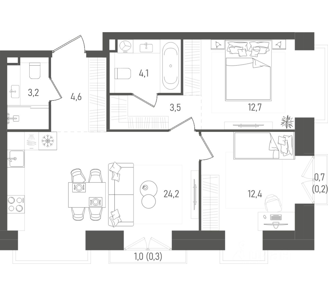Площадь: 65.2 кв. м.